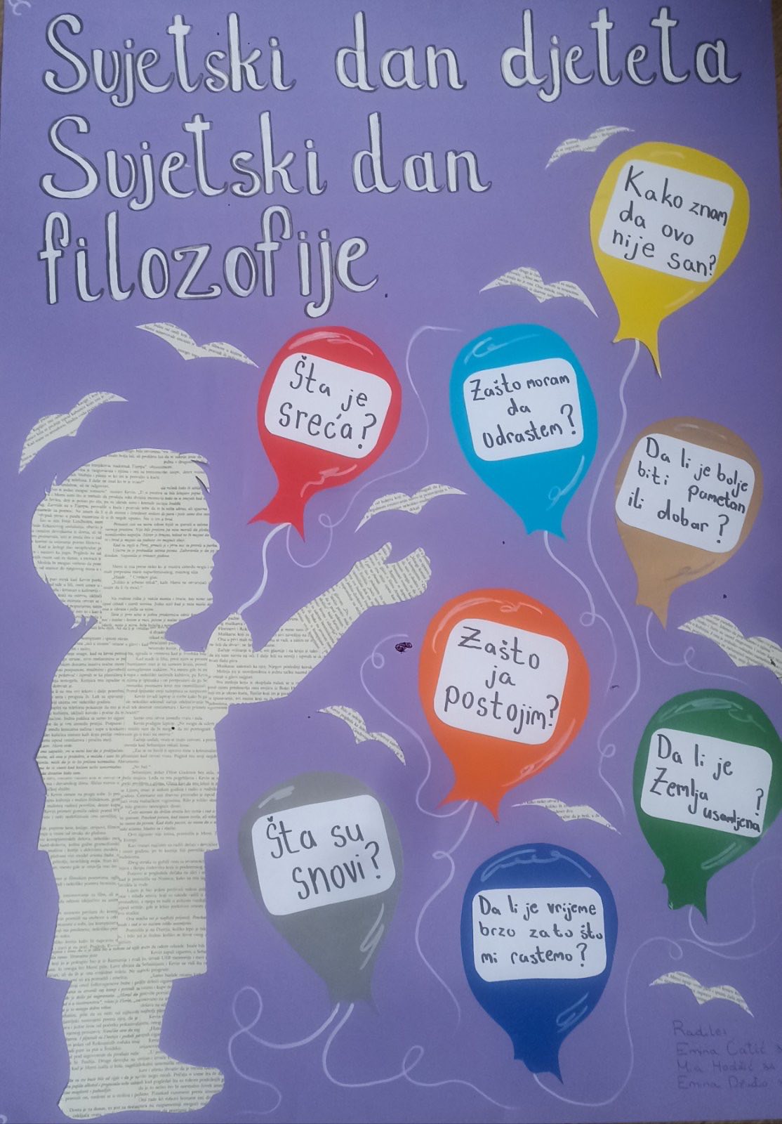 Povodom obilježavanja Svjetskog dana filozofije u našoj školi na času Filozofije sa logikom održan je okrugli stol na temu: Svako dijete ima pravo da pita. Aktivnosti povodom obilježavanja Svjetskog dana filozofije učenici su povezali sa obilježavanjem Svjetskog dana djeteta koji se ove godine obilježava na isti datum. Učenici su čitali tekstove o ovim datumima, eseje posvećene filozofiji i pravima djeteta, slušali smo recitale uz ugodne zvukove gitare koje su naše učenice svirale. Svi su učenici napisali pitanje koje po njima svako dijete ima pravo da pita. Realizaciju ovih aktivnosti osmislile su i vodile profesorice Filozofsko-recitatorske sekcije Emina Ćosibegović i Hatidža Omanović-Radmilović.