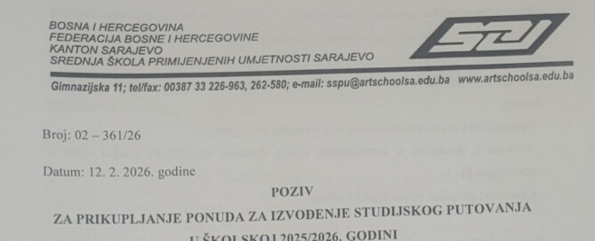 Poziv za prikupljanje ponuda za izvođenje studijskog putovanja u školskoj 2025/2026.godini